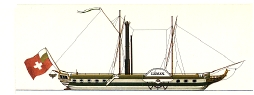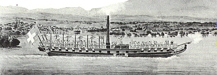 En 1814, dans son conservateur suisse, le doyen Bridel avait dit son étonnement à constater que sur un bassin aussi vaste que le Léman, bordé de cités prospères, on n'ait pas encore établi un coche d'eau, comme il en existait sur d'autres lacs de Suisse : " Ce serait pourtant utile et faciliterait à peu de frais les relations."La réponse à cette suggestion a été donnée brillamment par M. Church, consul des Etats-Unis en France, qui en 1823, à Genève, nous a fait la démonstration de l'esprit d'entreprise des Américains. Il ordonna, à ses frais et risques, la construction du premier bateau à vapeur, pour 200 passagers, sur les lacs suisses, bateau qu'il baptisa Guillaume Tell " en hommage au héros des antiques libertés helvétiques".