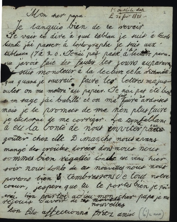 Première lettre de Henri-Frédéric à son papa